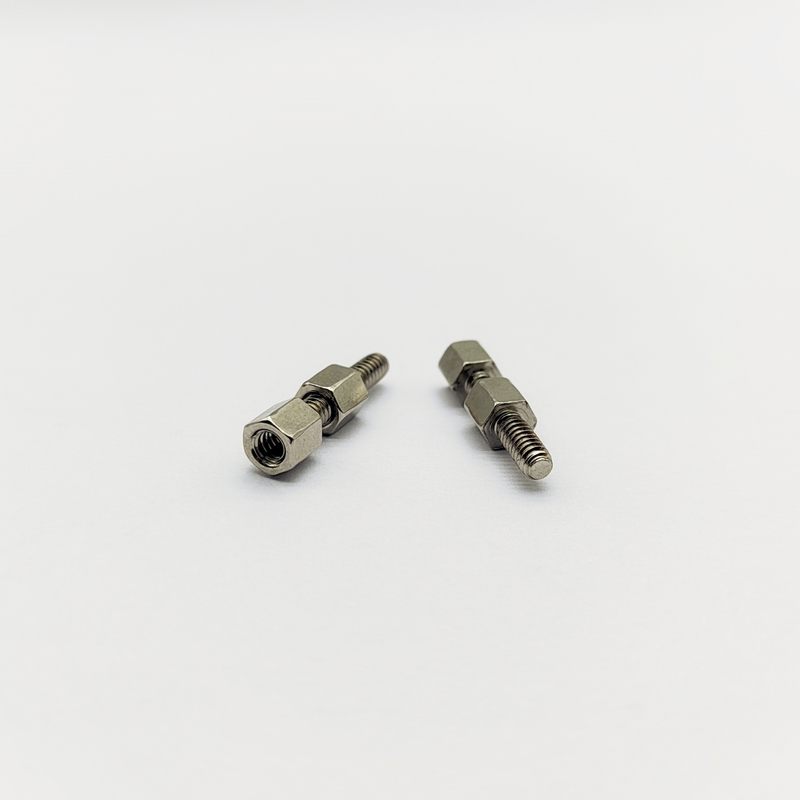 - Zainstaluj męski wątek:Wkręć męską gwint (#4-40) w otwór wstępnie podskoczony w podwoziu lub podstawowej płytce drukowanej.
